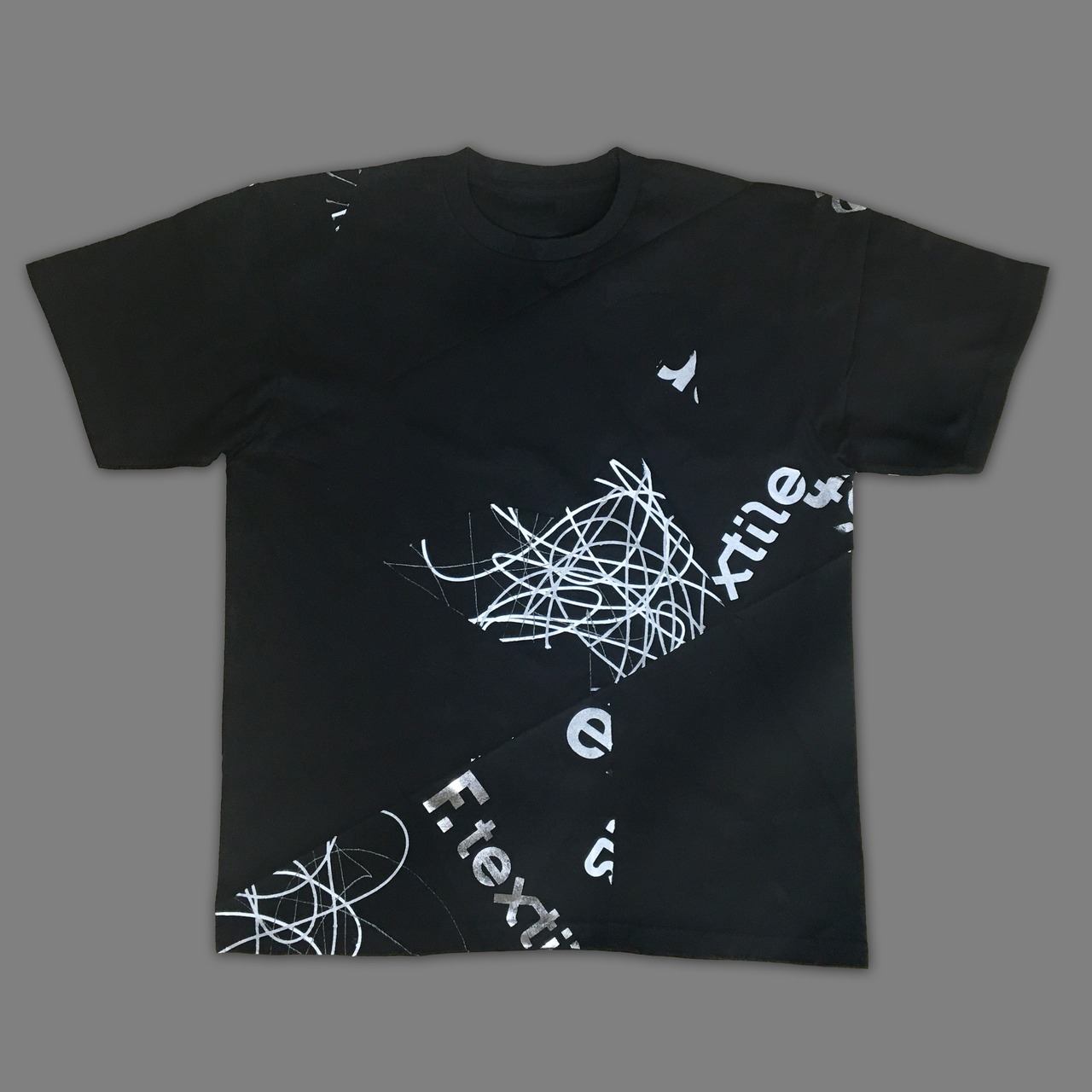 textiletellsとのコラボではtextiletellsのグラフィックデザインやペインティングテクニックをF.のシステムにMIXしています。