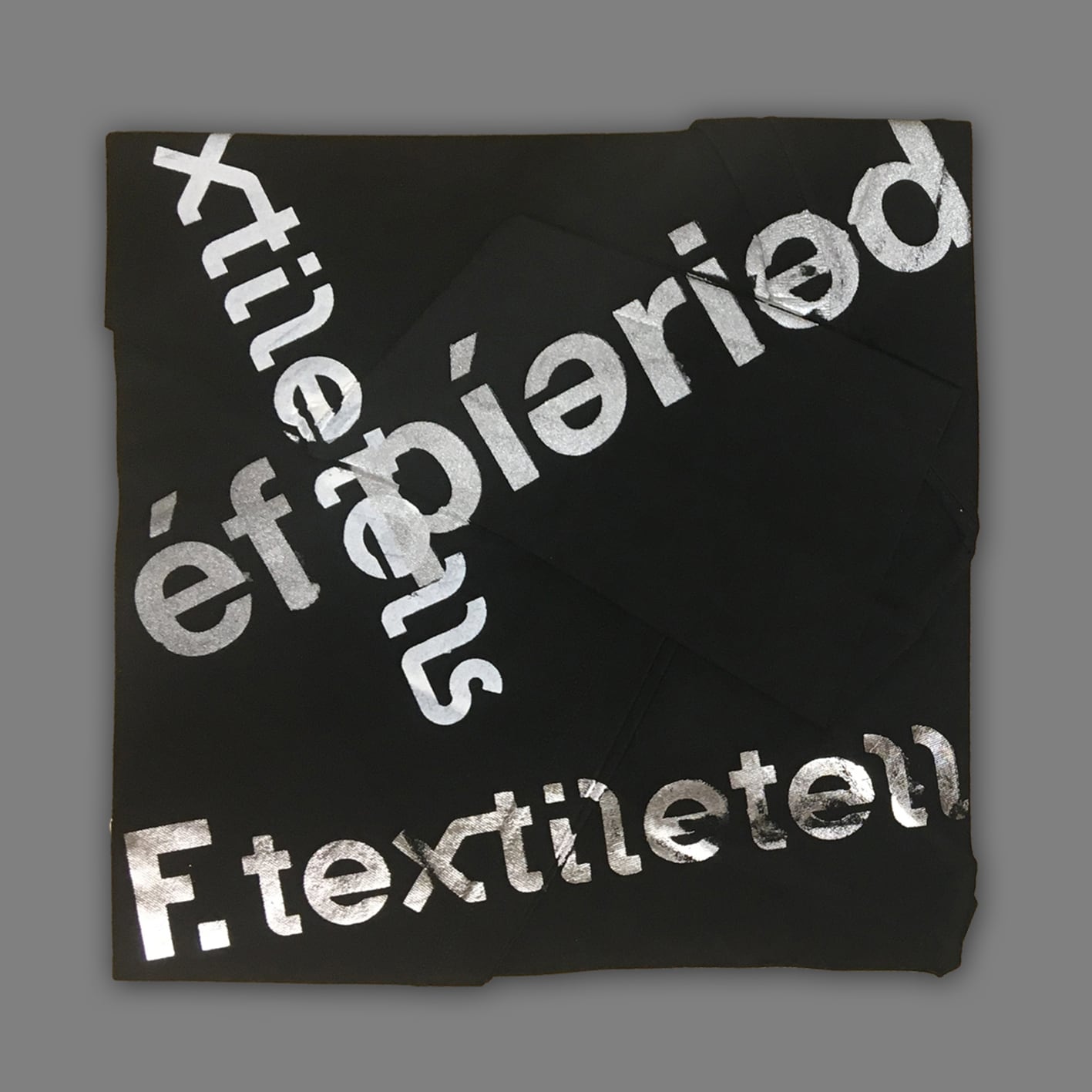 textiletellsとのコラボではtextiletellsのグラフィックデザインやペインティングテクニックをF.のシステムにMIXしています。