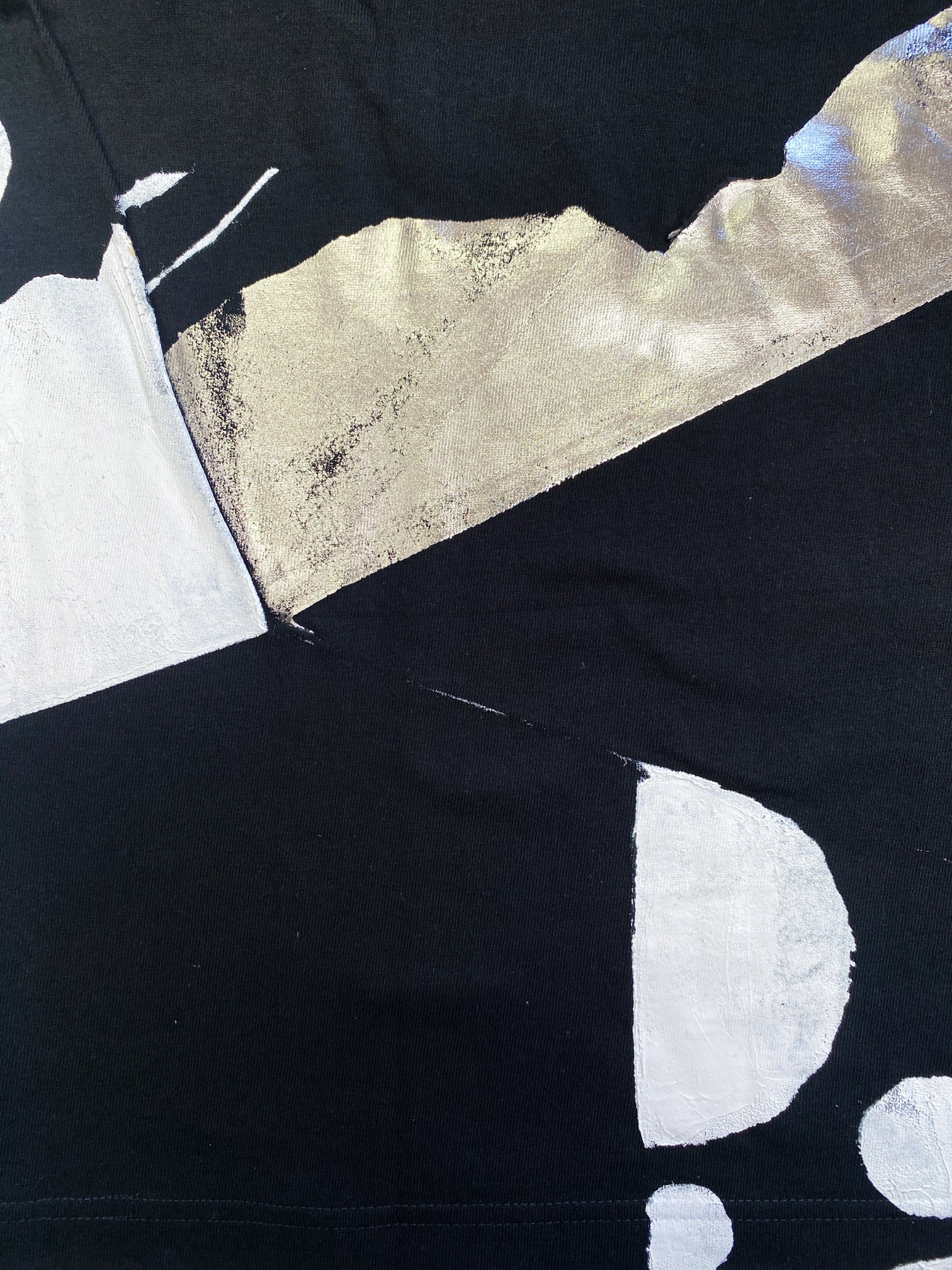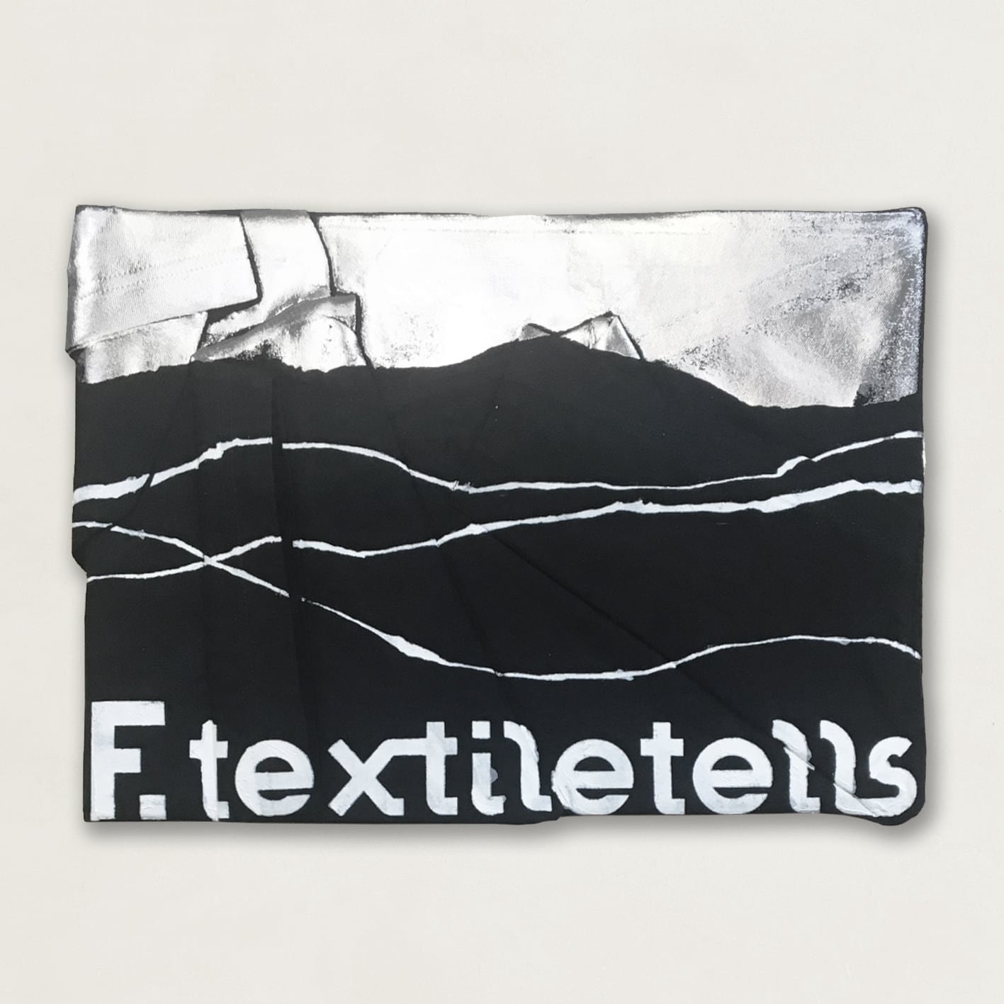 textiletellsとのコラボではtextiletellsのグラフィックデザインやペインティングテクニックをF.のシステムにMIXしています。