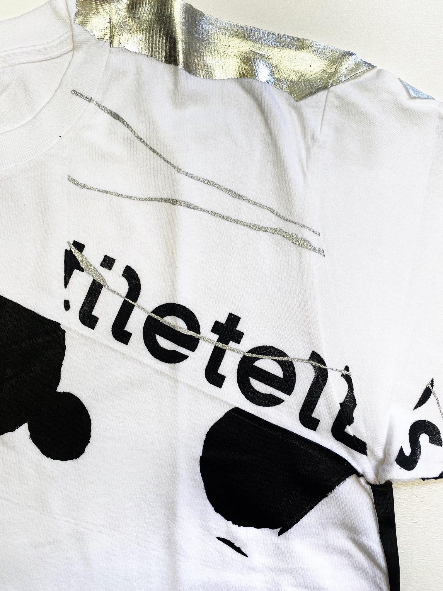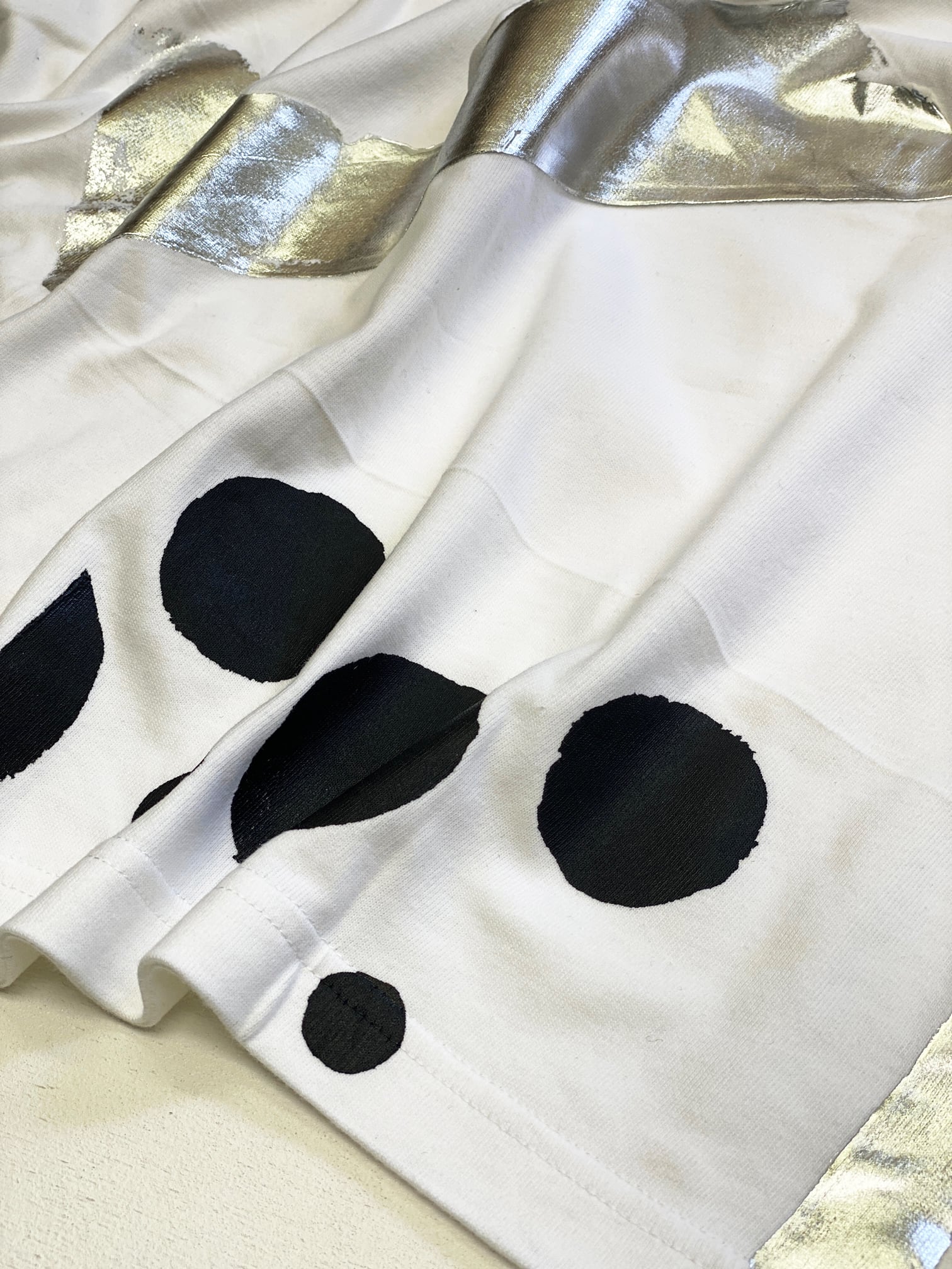 textiletellsとのコラボではtextiletellsのグラフィックデザインやペインティングテクニックをF.のシステムにMIXしています。