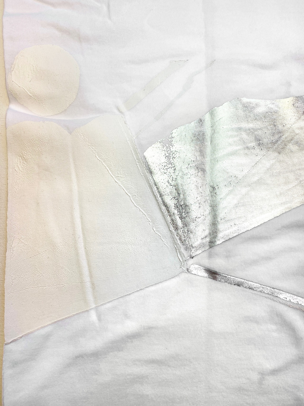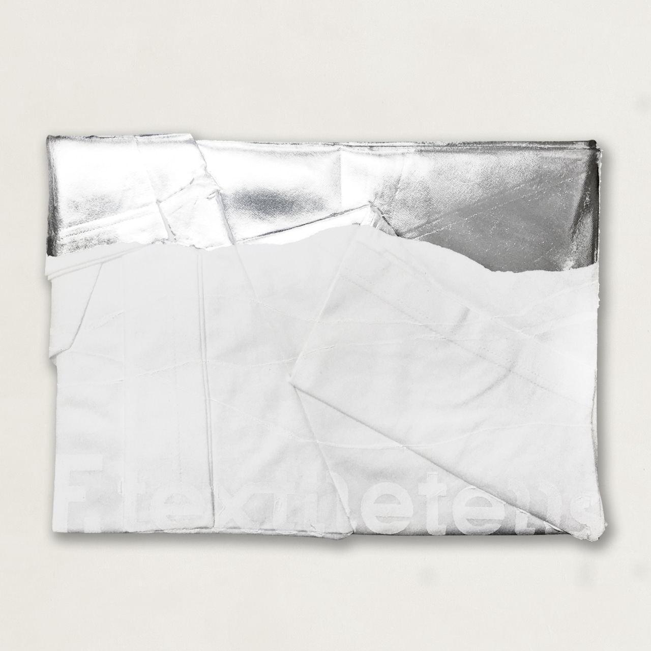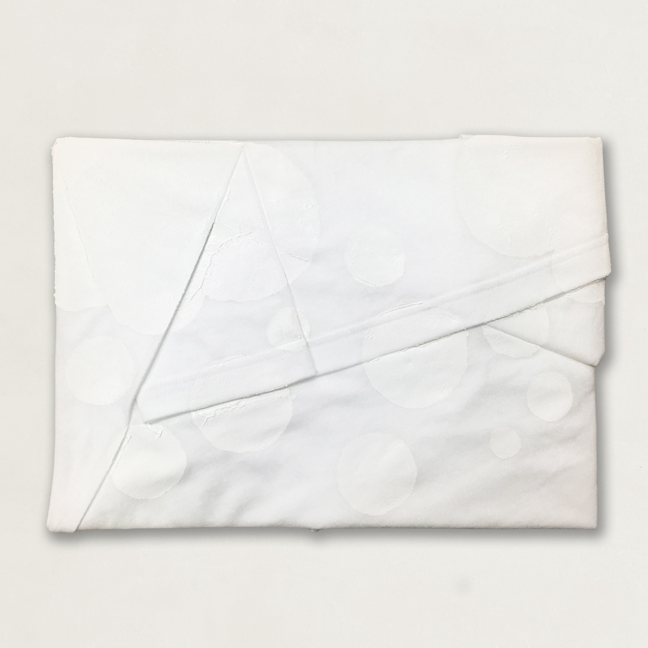 製品を四角形に折りたたんだ凹凸のある状態で加工することで、平面加工とは違う材料の厚みやかすれが自然と生まれ、同じように加工しても、一点一点表情の違う個性のある製品が生まれます。