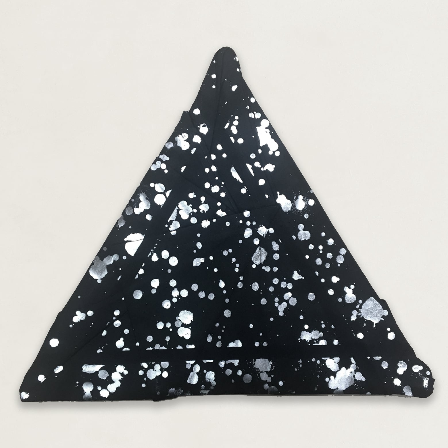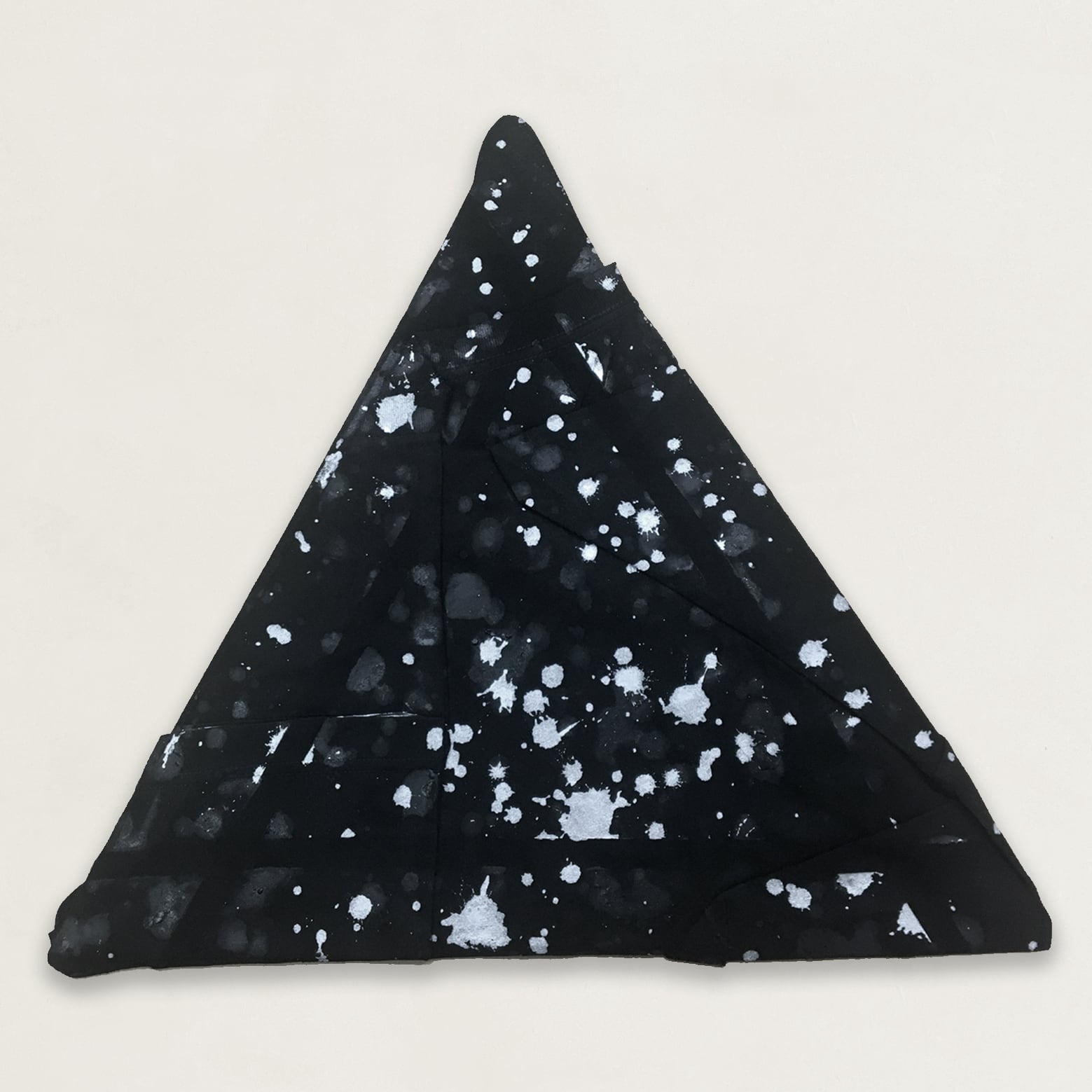 製品を三角形に折りたたんだ凹凸のある状態で加工することで、平面加工とは違う材料の厚みやかすれが自然と生まれ、同じように加工しても、一点一点表情の違う個性のある製品が生まれます。